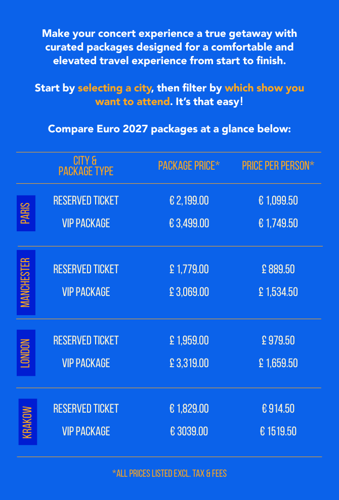 Each Euro 2027 Rush Travel Package includes: